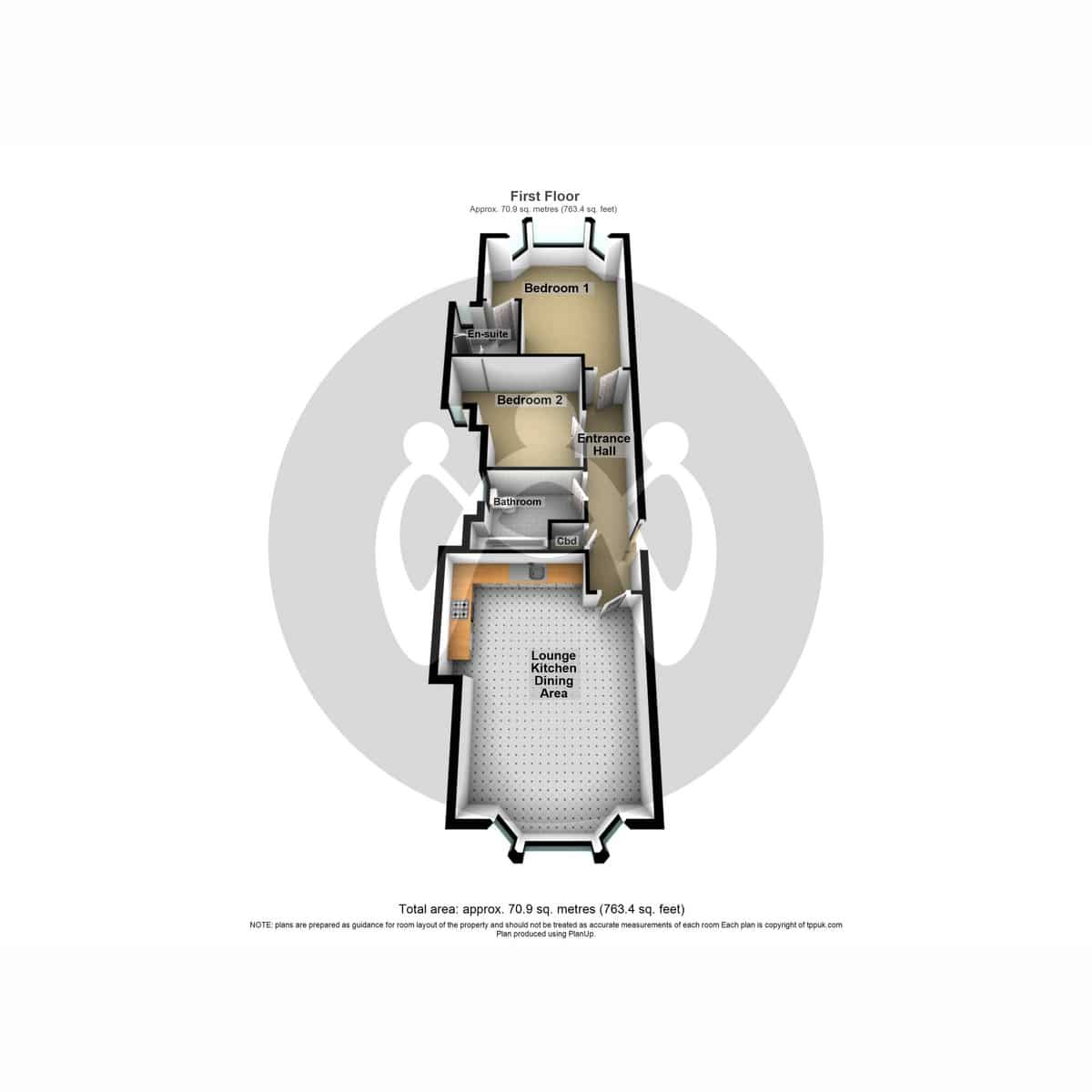 Living, Kitchen Dining Area 5.82m (19'1") x 4.55m (14'11") maximum dimensionsA fantastic relaxation and entertaining space with elevated views out through the bay window to front. Contemporary styled kitchen with built in oven, hob and fridge/freezer.