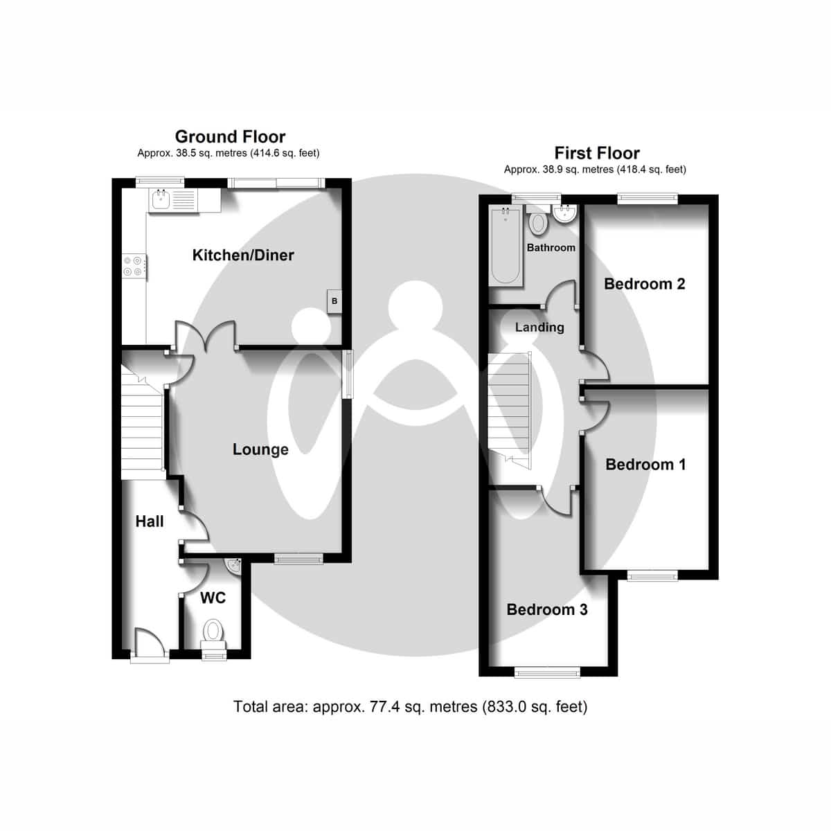 Ground FloorRadiator. Stairs to first floor. Door to WC with window to front, wash hand basin and toilet.