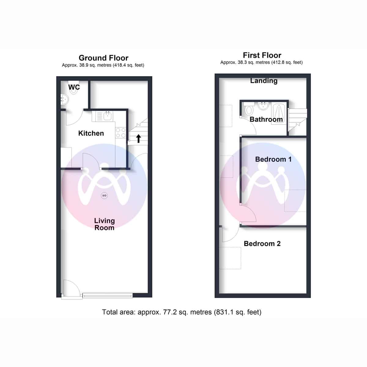 Fitted with two piece suite comprising, wash hand basin and WC.