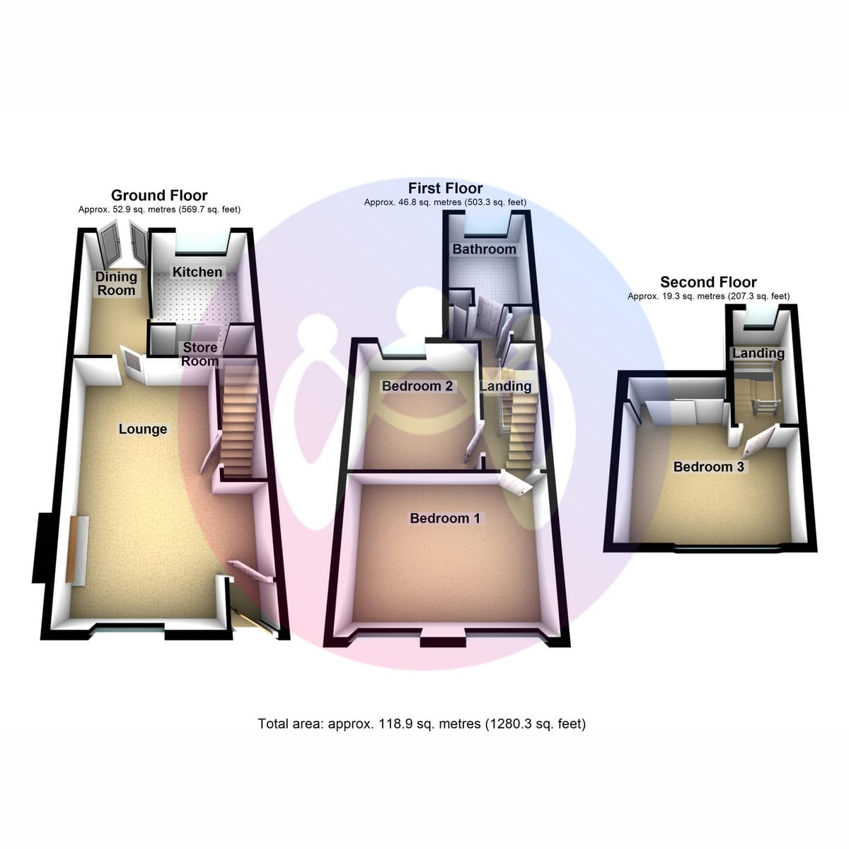 Kitchen 9'5" x 10'4" (2.87m x 3.15m)A modern kitchen which is fitted with a matching range of base and eye level units with worktop space over the units. The kitchen is well equipped with appliances such as built in cooker, washing machine and dishwasher. A sliding door leads into a useful store room under the staircase.