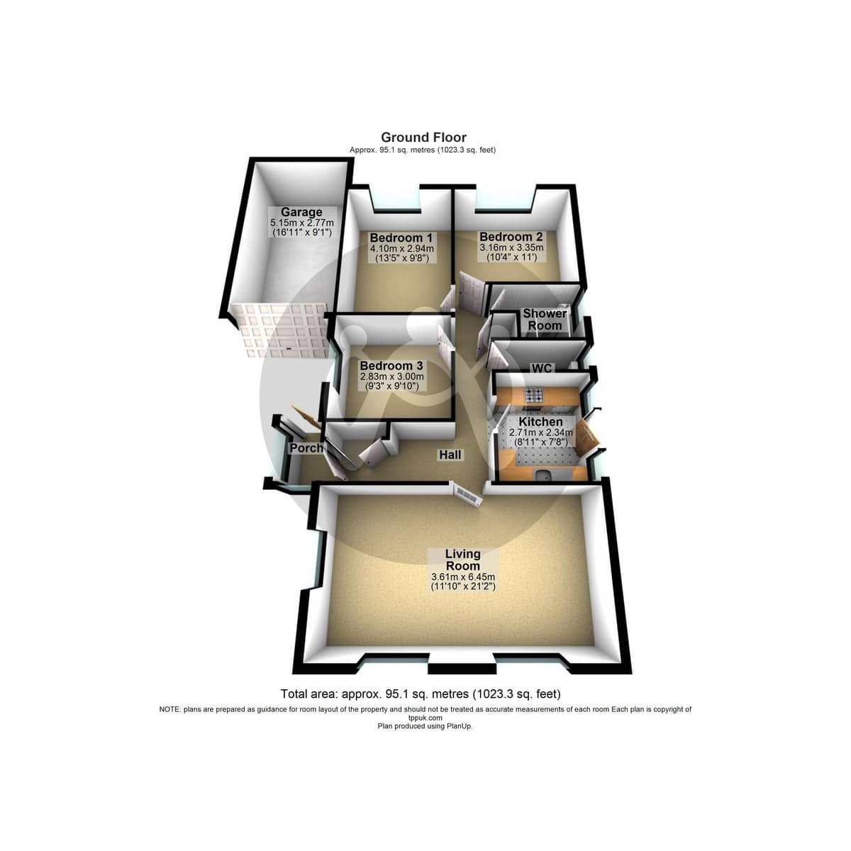 Bedroom 2 3.35m (11') x 3.16m (10'4”)