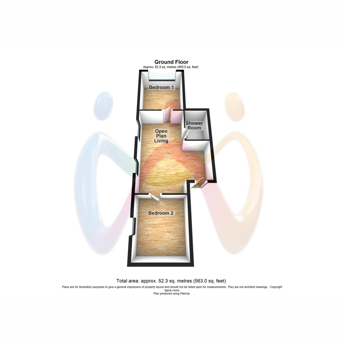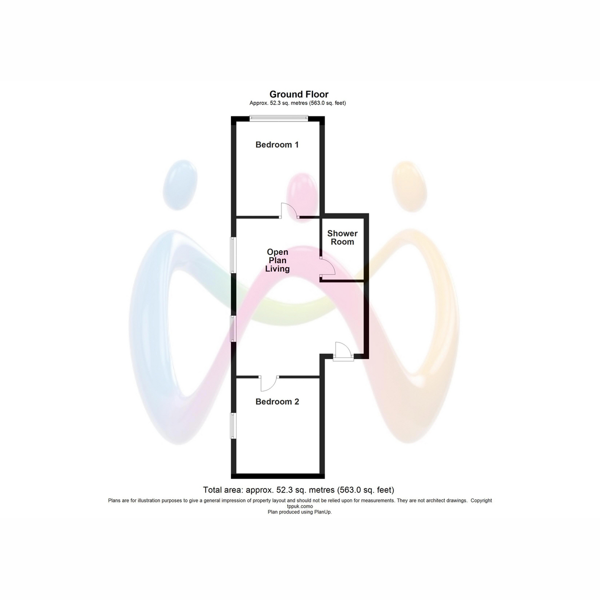 Open Plan Living Area 19' 10'' x 10' 6'' (6.04m x 3.20m)Open plan living arrangement which is split to provide a living/dining area as well as a fitted kitchen. Benefitting from a range of base and eye level units with worktop space over, there is a built in cooker, fridge freezer and sink.