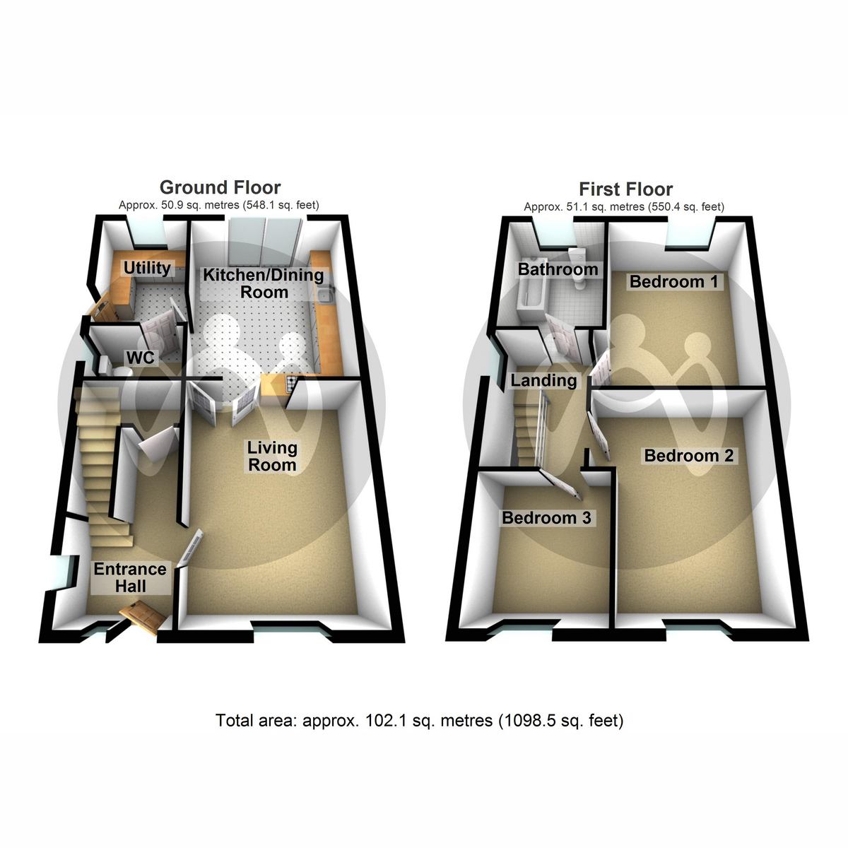 OutsideWith fenced rear garden laid to lawn with hard standing pathways. To the front is a partially shared area with designated parking space for the property.