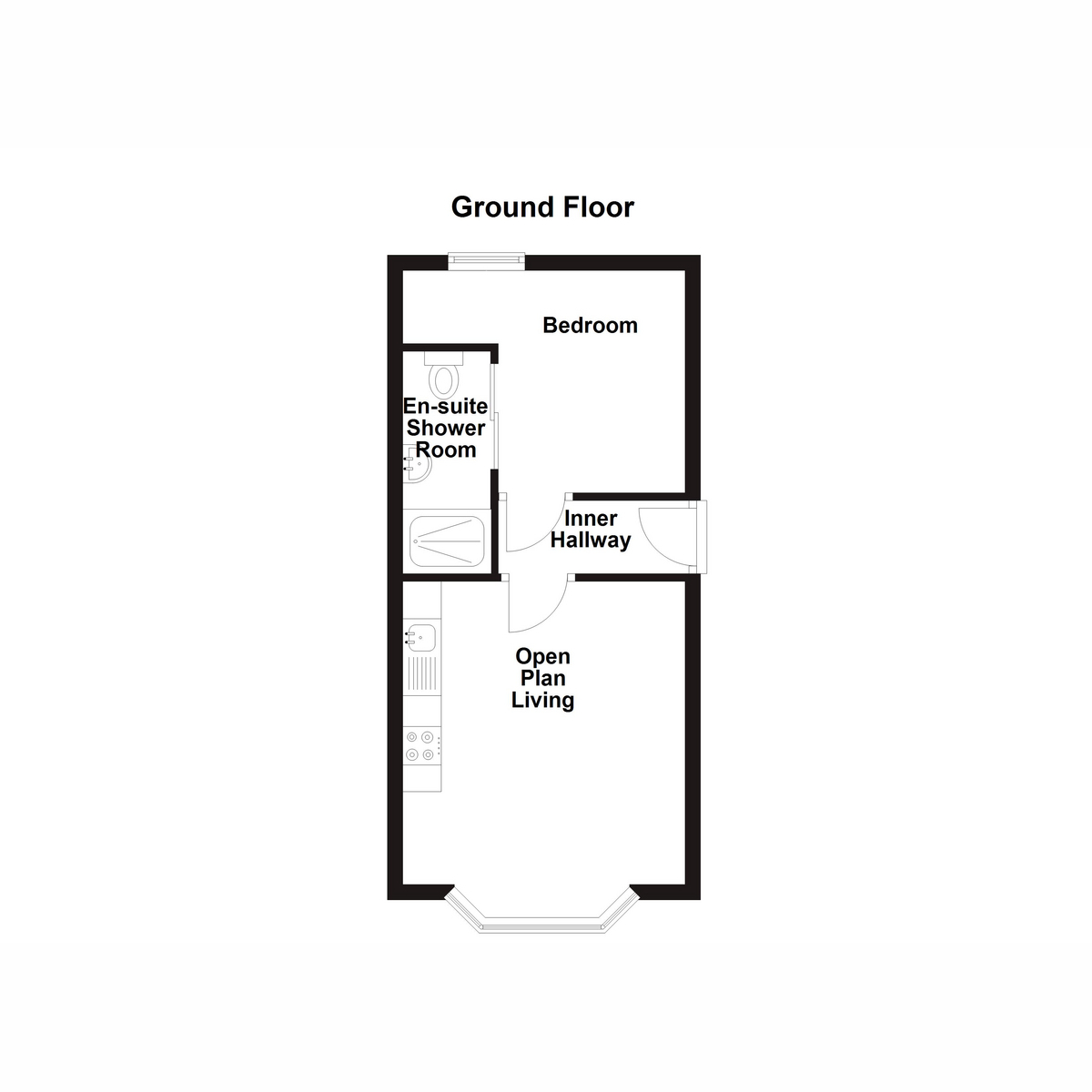 Open Plan Living Space 12'11" x 12'2" (3.95m x 3.71m)uPVC double glazed bay window to front, fitted with a matching range of base and eye level units, stainless steel sink unit, fitted electric oven, four ring induction hob with extractor hood over, space for under counter fridge